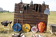 На мероприятиях с большим количеством участников мы предлагаем организовать фотосессию в доспехах с оружием на фоне отдельно-стоящей деревянной декорации, которая позволяет выделить участок фотосессии как отдельную активную площадку, на которой гости могут весело провести время в перерывах между стрельбой.